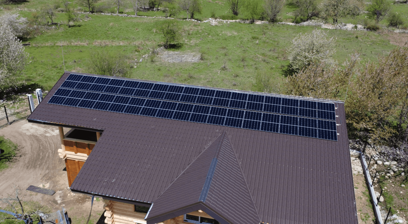 Off-grid PV system with an installed capacity of 14.7 kWp and 25 kWh battery storage