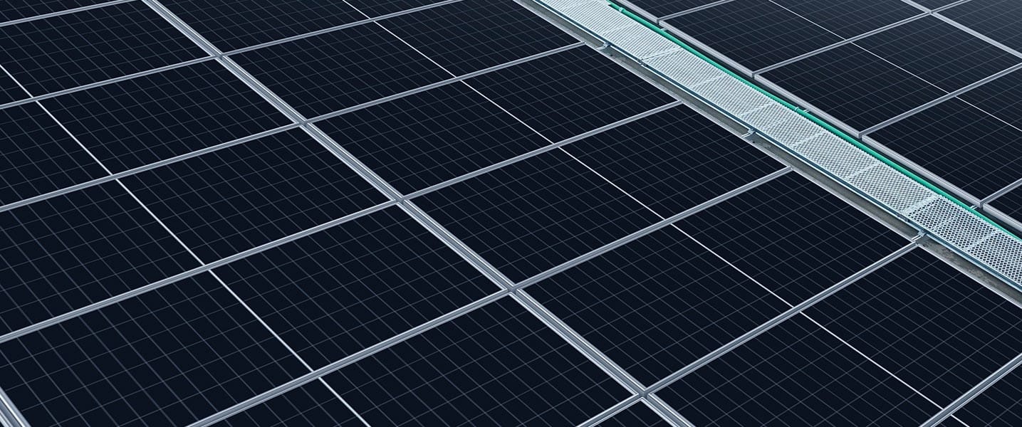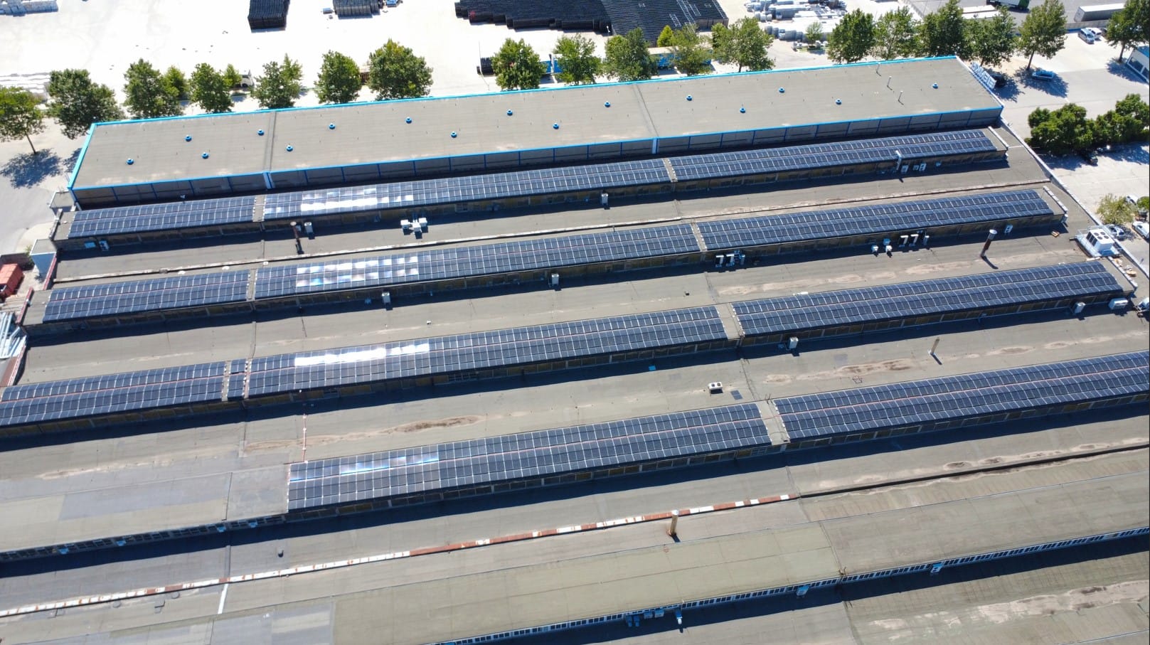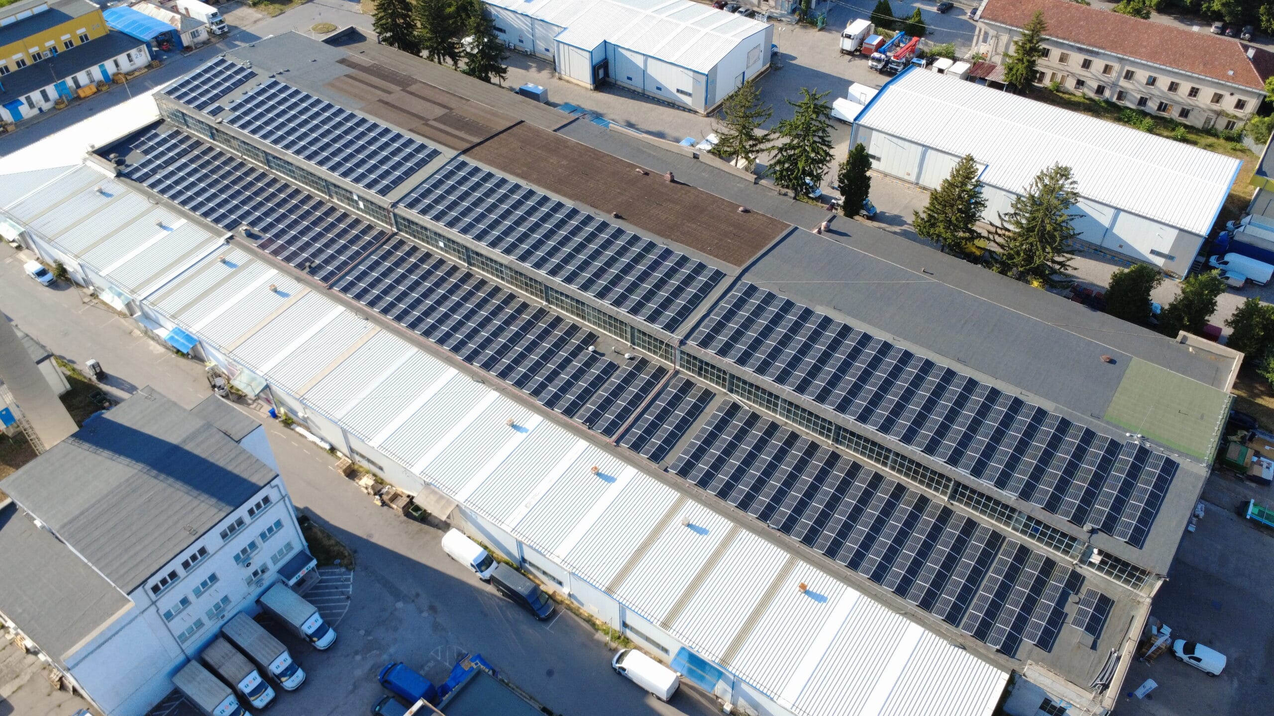 A grid-connected photovoltaic system designed by us, configured for self-consumption only, installed on the bitumen roofs of a warehouse facility.